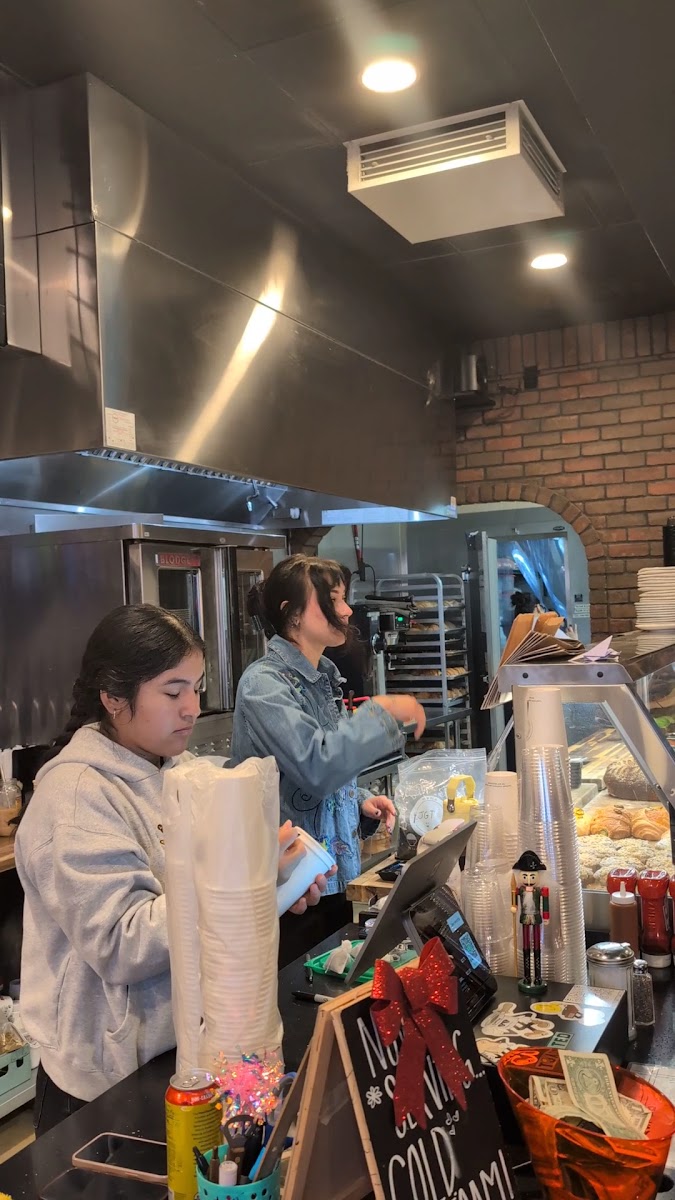The vibe here leans casual and social, with inside seating that fills quickly and standing tables outside drawing a crowd looking to grab a quick bite or linger over a latte. The space feels energetic and sometimes loud, backed by a playlist that doesn’t shy away from more upbeat, modern tracks. It’s the kind of environment that suits people who enjoy a buzz while they eat, rather than a quiet retreat.