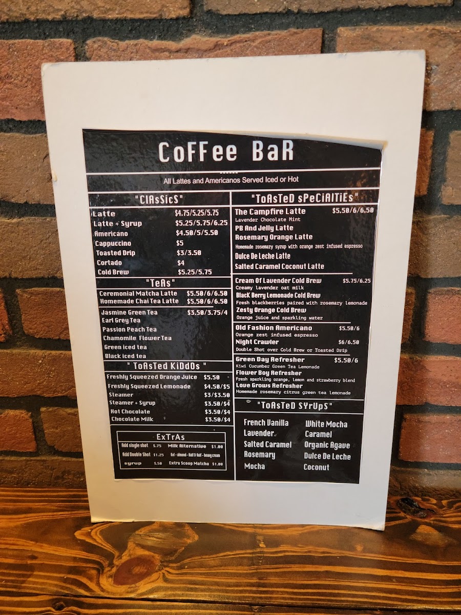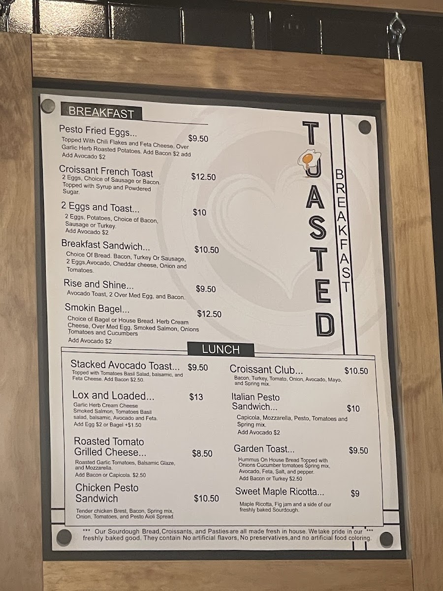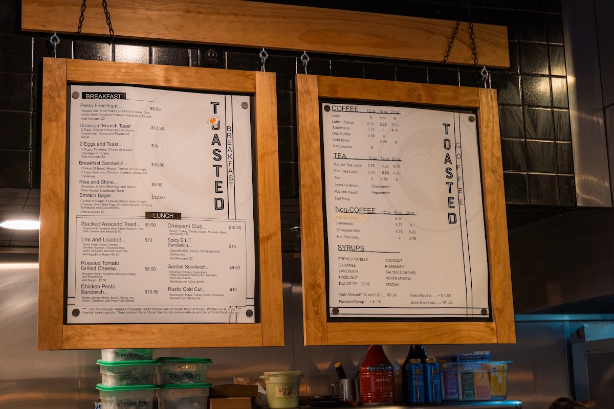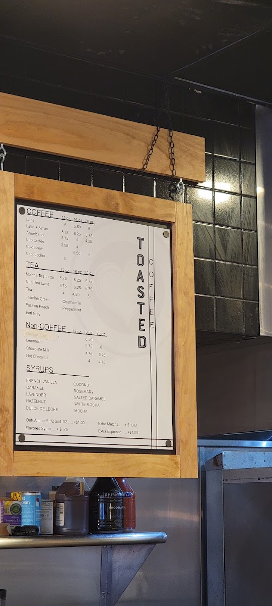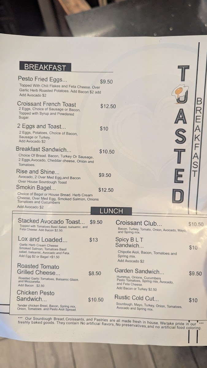 The menu at TOASTED INC offers a variety of options primarily focused on breakfast and light meals, complemented by an extensive selection of coffee and tea beverages. Visitors can expect a balanced combination of bakery items, breakfast sandwiches, and specialty drinks suitable for morning and midday dining or casual coffee breaks.